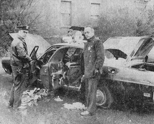 Police car after grenade attack