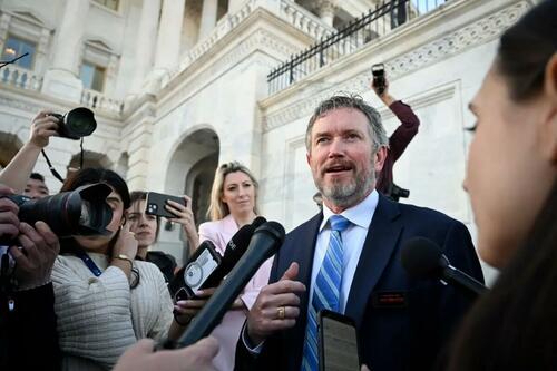 U.S. Rep. Thomas Massie (R-Ky.) speaks to the press outside the U.S. Capitol, as the only Republican to vote against passing the House legislation to fund the government through Sept. 30 and avert a shutdown, on March 11, 2025. Roberto Schmidt/AFP via Getty Images