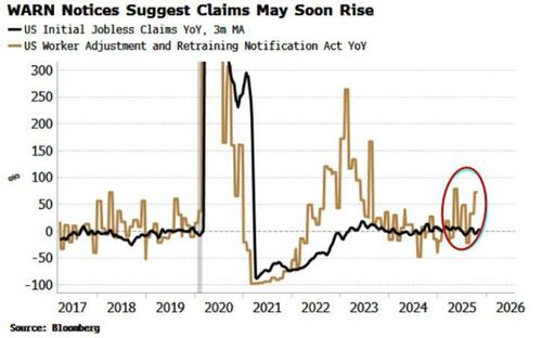 Additionally, WARN notices, which have previously led unemployment claims, are rising again.
