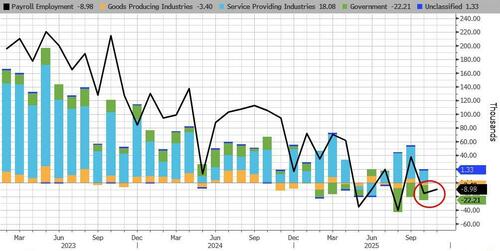 Yet another alternative labor market signal points to weakness (more in line with ADP’s job losses) as Revelio shows 9k job losses in November…