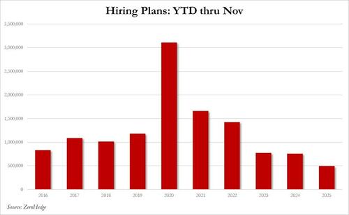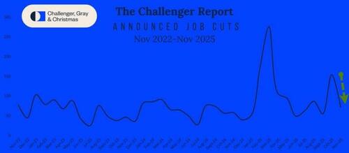 This lack of firing comes as ADP reports the biggest manufacturing sector job losses since COVID and Challenger, Gray & Christmas reports U.S.-based employers announced 71,321 job cuts in November, up 24% from the 57,727 job cuts announced in the same month last year.