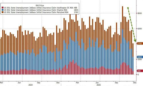 It appears a lack of government firings is helping as the ‘Deep Tristate’ initial claims tumbled to its lowest since Nov 2024…