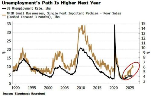 That has been rising, which often precedes the unemployment rate. Small businesses employ about half the workforce in the US and given the plunge in small business jobs reported by ADP yesterday, it seems labor market pains are starting to accelerate under the surface.