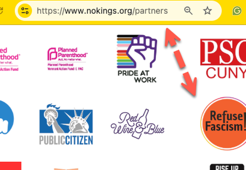 Refuse Fascism is a ‘No Kings’ partner (according to the No Kings website). No Kings’ color revolution-style operation earlier this month, in the words of Mike Benz, “Fell flat in DC too. Coup d’f́lat” because the crowds mainly attracted old white liberal baby boomers that sure as hell don’t have the strength to stand around for more than three hours.