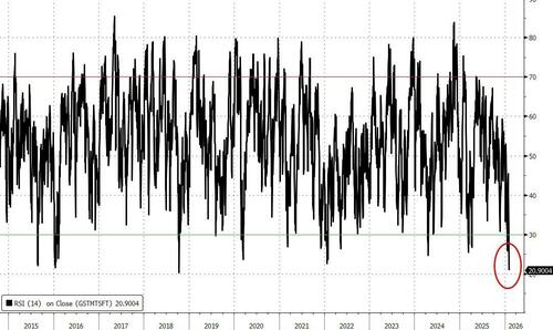 The RSI of the Software sector is at 20 – massively oversold – the most oversold since 2018…