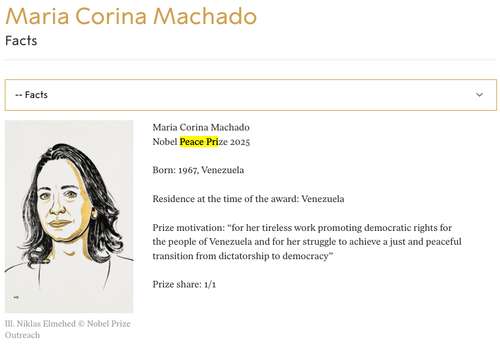 Early Friday, the Norwegian Nobel Committee awarded the prize to Venezuelan opposition leader María Corina Machado “for her tireless work promoting democratic rights for the people of Venezuela and for her struggle to achieve a just and peaceful transition from dictatorship to democracy.”