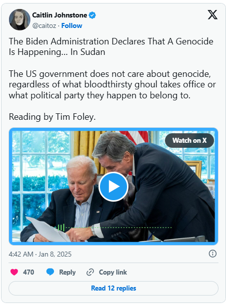 The ongoing nightmare in Sudan is largely a product of the abuses of the western empire. The UAE is an imperial client state who the US and its allies recently supported in its years-long genocidal war on Yemen in partnership with Saudi Arabia. There are all kinds of threads you can trace back to western allies and partners in this genocide, as is the case for most of the worst things that happen in our world these days.