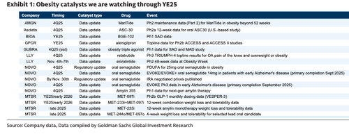 Besides Novo, there’s a lot more happening in the obesity space. Goldman Sachs analysts, led by Corinne Johnson, provided clients with a comprehensive breakdown of the upcoming stock-moving developments across Eli Lilly, Novo Nordisk, and other players in the sector.