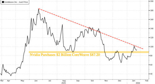 CoreWeave CEO Mike Intrator said in a Bloomberg interview that Nvidia funding accounts for about 2% of what his company plans to spend on new infrastructure. “This year, we’re going to deliver an enormous amount of infrastructure, and that’s just going to accelerate over the next three years,” he said.
