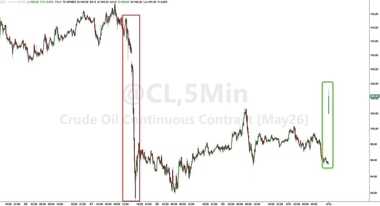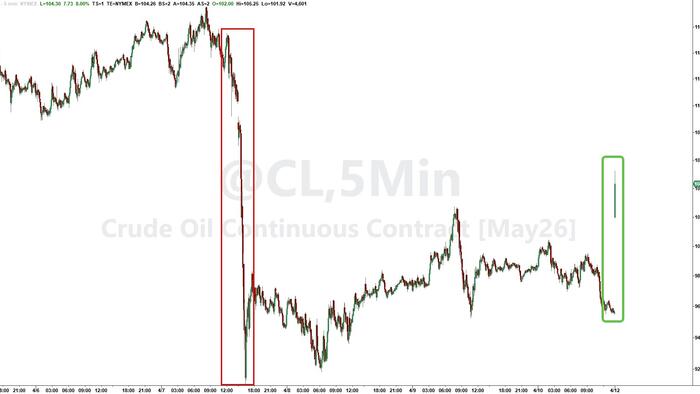 WTI opened up over 8%, topping $105…