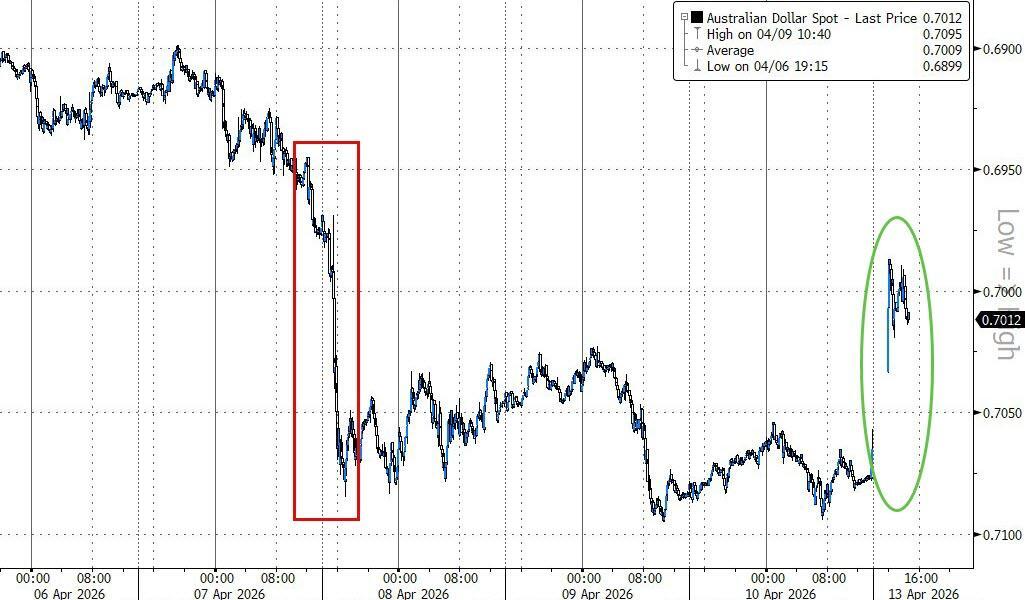 Before the ‘official’ futures markets opened, the risk-off tone (due to the failed peace talks and Trump’s threat to blockade Iranian vessels) was very evident in FX and crypto markets.