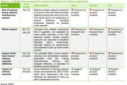 • In the OECD, oil demand s forecast to grow by about 0.1mln BPD in 2025 while the non-OECD is forecast to grow by about 1.2mln BPD.
