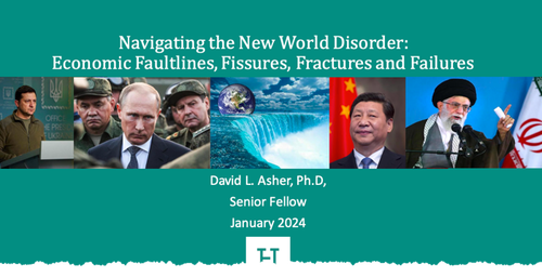 In March 2024, David Asher, a senior fellow at Hudson Institute and former investigator into Covid origins at the State Department, penned a report titled “Navigating the New World Disorder: Economic Faultlines, Fissures, Fractures, and Failures.”