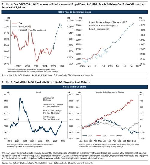 The glut thesis is hardly new, and has been popularized by banks such as Citi and Goldman for the past year. As Goldman analyst Daan Struyven wrote in his latest oil tracker note, “global visible oil stocks have built by nearly 2mb/d over the past 30 days.” The banks expects them to grow significantly more in the coming years.