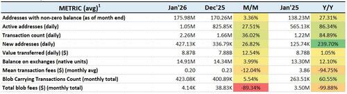 However, for Ethereum, average daily active addresses, new addresses, and transaction counts were up by +27.5%, +26.8% and +36.0% MoM respectively.