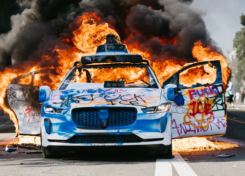 Los Angeles Riots 2025, Marxists Burn Waymos