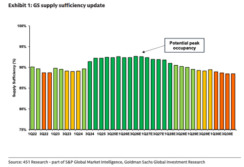 The bigger question is whether user fatigue with AI products is only now beginning to emerge. If that’s the case, Hood’s concerns about OpenAI’s aggressive expansion may be justified, as Goldman’s James Schneider told clients, “The net impact of our model updates extends the duration of peak datacenter occupancy well into 2026 (from the end of 2025 previously). After this point, we forecast a modest, but gradual loosening of supply/demand balance in 2027…”