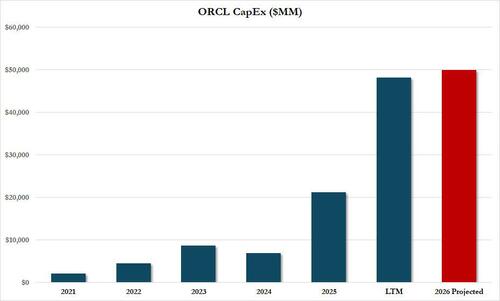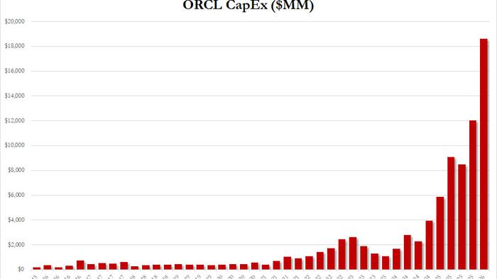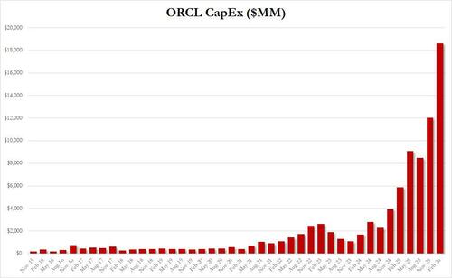 And while the above is all good, what wasn’t so good is that ORCL’s Q2 capex came in at a stunning $18.6 billion, triple the number from a year ago, and 50% higher than the Q1 capex print. To say that the company is incinerating money is doing a disservice to incinerators.