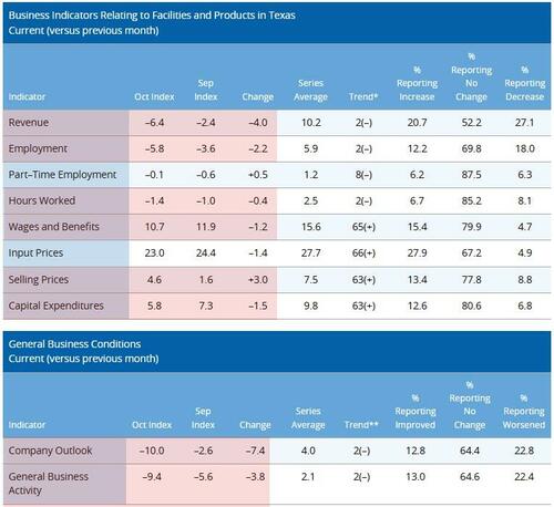 Labor market measures suggested further declines in employment, though hours worked were largely unchanged this month. The employment index fell slightly to -5.8 from -3.6 in September…