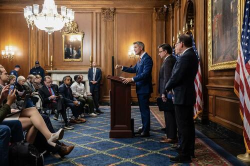 Secretary of Transportation Sean Duffy speaks at a press conference at the U.S. Capitol on Oct. 23, 2025. Duffy recently said the FAA has replaced more than 30 percent of its copper lines with fiber optics. Eric Lee/Getty Images