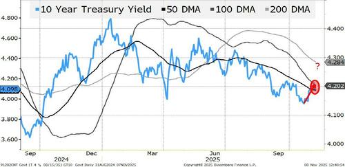 While the admin will not allow 10s to “get out of control,” 4.3% (the 200-day moving average) seems like a reasonable short-term target.