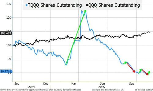 Since the end of August, the Nasdaq 100 is up almost 6%, despite only brief, and relatively small, inflows into TQQQ.