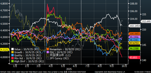 As of this writing, Komeito officially announced its withdrawal from the coalition government, as reported by NHK. This headline, released after the close of Japanese cash equities, triggered a panic-driven Nikkei futures sell-off of 130 basis points, a reaction deemed excessive. Other assets, including JGB futures and the Yen, reacted more moderately with slight rebounds.