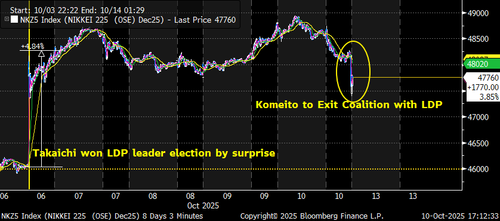 Komeito, the long-standing political partner of Japan’s powerful Liberal Democratic Party, shocked Japan watchers on Friday when it said it was withdrawing from the ruling coalition following last weekend’s election of Sanae Takaichi as the LDP’s leader, citing policy differences on tightening political fundraising rules.