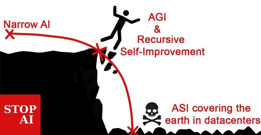 The group’s rationale included this claim (published on their account on August 29, 2025): “Humanity is walking off a cliff,” with AGI leading to “ASI covering the earth in datacenters.”