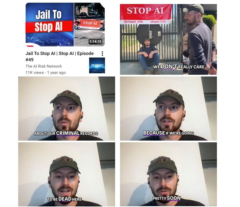 Sherman also produced an emotional documentary with “Stop AI” titled “Near Midnight in Suicide City” (December 5, 2024, episode #55. See its trailer and promotion on the Effective Altruism Forum). It’s now removed from podcast platforms and YouTube, though I have a copy in my archive (length 1:29:51). It gathered 60k views before its removal.