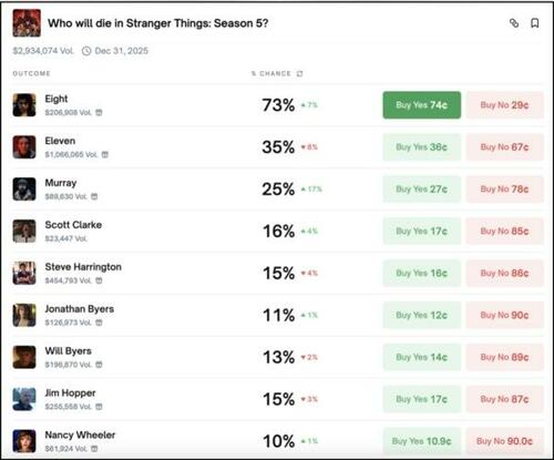 The masses don’t care. They’re busy piling onto Polymarket and betting on which Stranger Things character is going to die in the finale: