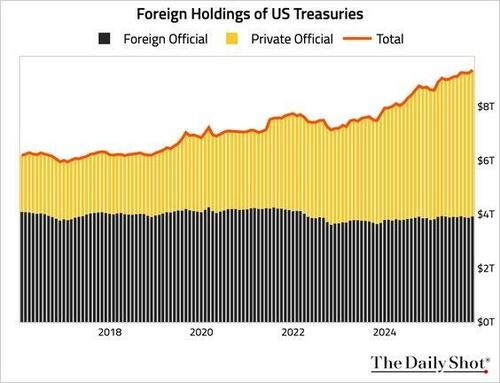 The falseness of those narratives is underscored by the rising and record levels of US Treasury bond purchases by foreigners. (If they were de-dollarizing or were worried about debasement, they would not be buying Treasuries, which are dollar-denominated.)