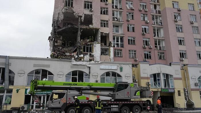 Ukraine’s Interior Minister Ihor Klymenko said on Telegram that 10 apartment buildings were hit and more than 20 people were injured. The Associated Press later updated the casualty count, reporting that 27, including two children, were wounded.