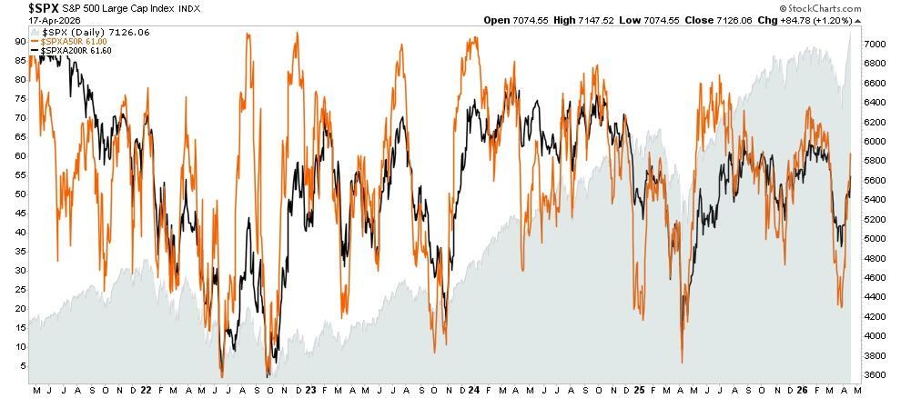 Breadth has also improved sharply, but there is certainly more room to broaden.