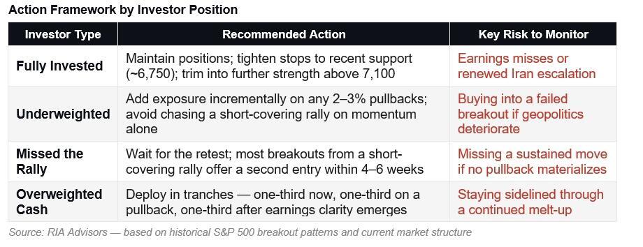 BOTTOM LINE: The S&P 500’s return to all-time highs is technically significant, but significance and sustainability are not the same thing. Yes, a short-covering rally lit the fuse, but the sustained move above the 200-day moving average, the improving VIX, and the early earnings beats suggest something more durable may be taking shape. History is clear that markets recover from geopolitical shocks faster than almost anyone expects. The investors who come out ahead aren’t the ones who chase; they’re the ones who use pullbacks to build positions in quality names, maintain discipline on stops, and resist the urge to mistake speed for safety. The next two to three weeks of earnings will tell us whether this is a new leg higher or the best exit ramp before a retest.
