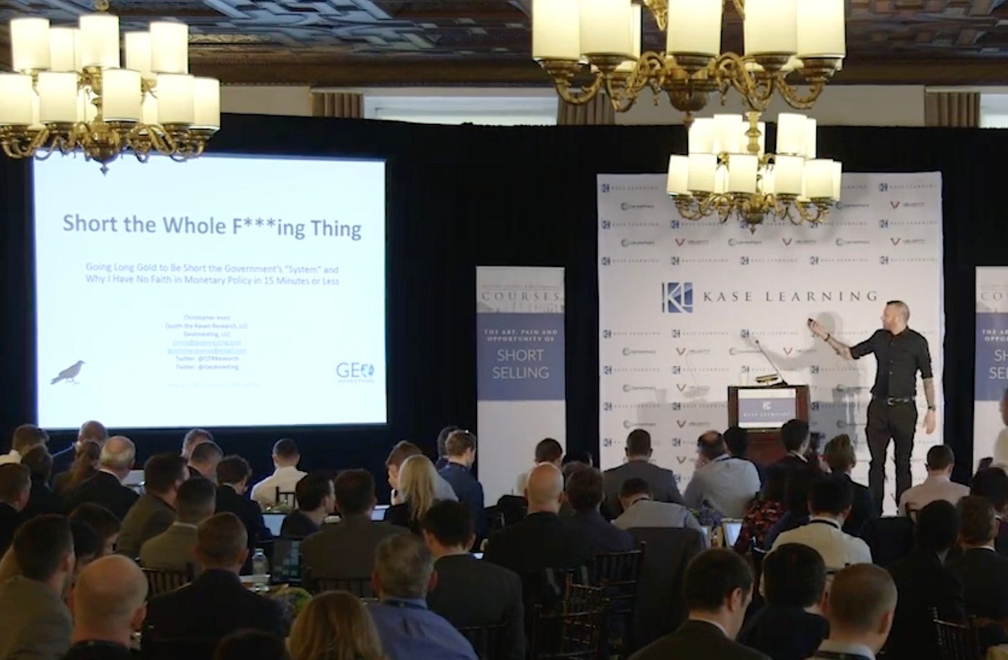 People told me, in all their hot shit modern monetary financial jargon, why I was wrong. Nevertheless, I persisted, drank 5 Moscow Mules before 10:30AM, took to a stage in front of a bunch of serious looking fucks in suits, and shrieked at the top of my lungs why buying gold (then at $1,319 an oz.) was the best way to, as my presentation was titled, “Short the Whole F*cking Thing”.