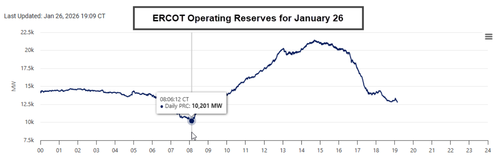 In ERCOT, the grid maintained operating reserves above 11,000 MW throughout the event. The thousands of natural gas facilities that underwent weatherization and inspection protocols following Winter Storm Uri performed as designed, with minimal forced outages reported.