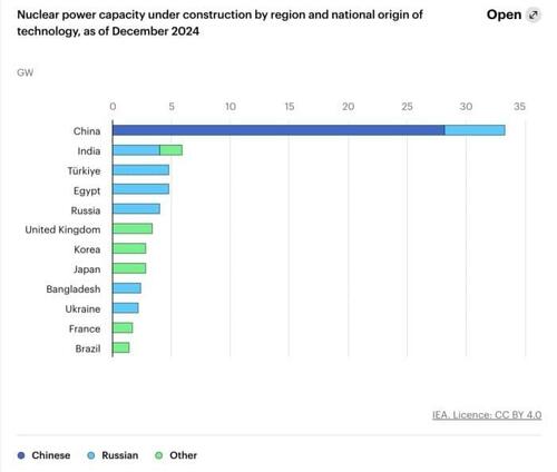 The “Nuclear Renaissance” is already happening; it just hasn’t reached the Atlantic yet. Of the 52 reactors started since 2017, nearly half are Chinese, and the other half are Russian.