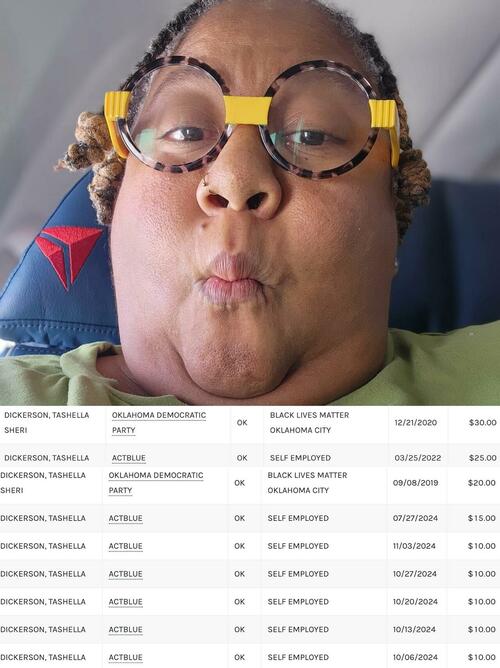Tashella Sheri Amore Dickerson, 52, served as Executive Director of Black Lives Matter OKC (BLMOKC). As Executive Director, Dickerson had access to BLMOKC’s bank, PayPal, and Cash App accounts, where federal prosecutors allege she looted the organization “for her personal benefit,” including travel to Jamaica and the Dominican Republic, tens of thousands of dollars in retail shopping, more than $50,000 in food deliveries, a vehicle, and six properties.