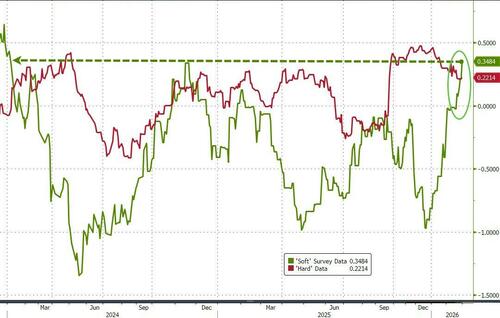This post-government-shutdown rebound in survey-based data has pushed ‘soft’ data to its highest since Jan 2024…