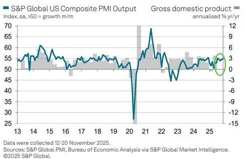 As official US macro ‘hard’ data starts to creep out from Washington, we get more private ‘soft’ survey data this morning (for preliminary November period) and it is ‘mixed’ for want of a better word.