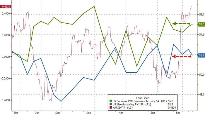 As official US macro ‘hard’ data starts to creep out from Washington, we get more private ‘soft’ survey data this morning (for preliminary November period) and it is ‘mixed’ for want of a better word.