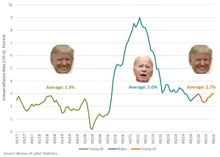 The rapid price inflation from 2021 through mid-2023 and slower but still above-target pace of price increases since then is the real cause of the affordability crisis, which the media did not characterize as a nationwide problem until Trump entered office. The burst of inflation since 2021 has been a direct result of overspending in 2020 in reaction to the pandemic, which was exacerbated unnecessarily by further wild spending increases in 2021 and 2022 implemented by President Joe Biden and Democrat-only votes in Congress.