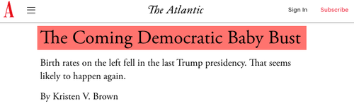 Deep Staters at The Atlantic have warned the leftist cult about the coming baby bust among its followers.