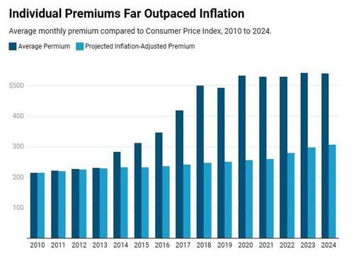 Even before the enhanced tax credits came online, premiums had more than doubled since 2013, the year before Obamacare began. By 2025, the increase reached nearly 133 percent, about four times the rate of inflation.