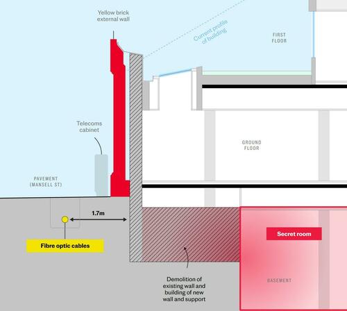 The drawings show that a single concealed chamber will sit directly alongside fibre-optic cables transmitting financial data to the City of London, as well as email and messaging traffic for millions of internet users.