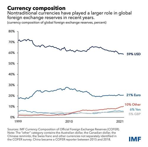 • The U.S. dollar still accounts for nearly 60 percent of global foreign-exchange reserves held by central banks.