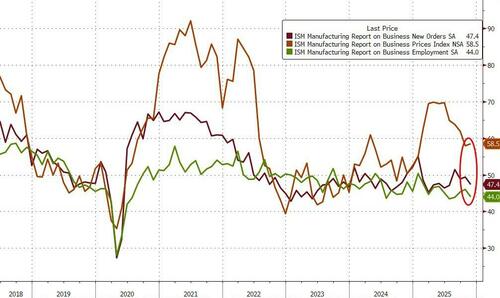 Under the hood, ISM shows Price Paid higher, and new orders and employment worsening…