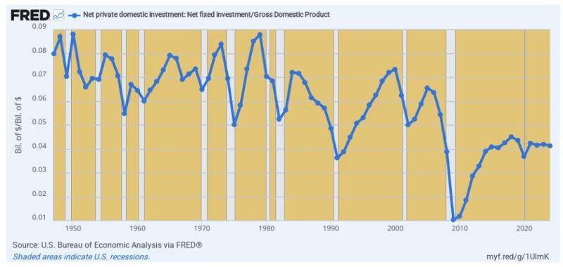 Net Investment % of GDP: 1947 to 2025