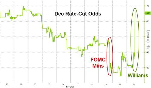 Amid the most fractured Fed we can remember (exposed by the Minutes released this week), we are surprised that one man’s comments can drive such a surge in the market, but then again, we have argued that very recent market pressure has been aimed at forcing The Fed’s hawks back to the table.